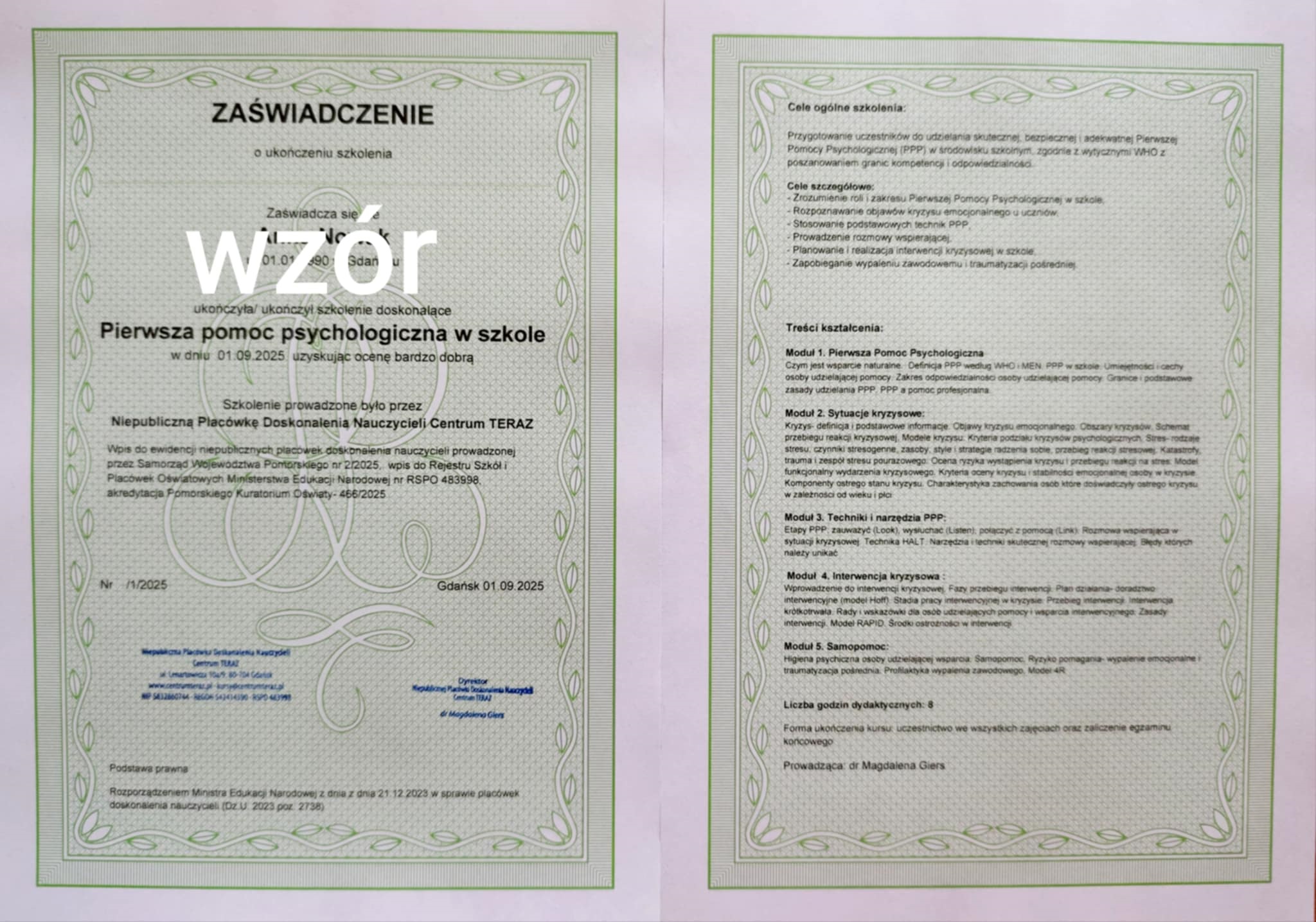 - akredytacja Pomorskiego Kuratorium Oświaty- decyzja nr 466/2025